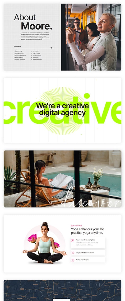 Highly customizable unique portfolio types and options that lead to fantastic portfolios with unlimited styles to showcase your work.